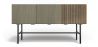 Lot Table Industrielle en Bois (220cm) & 8 Chaises en Rotin et Velours - Jenka