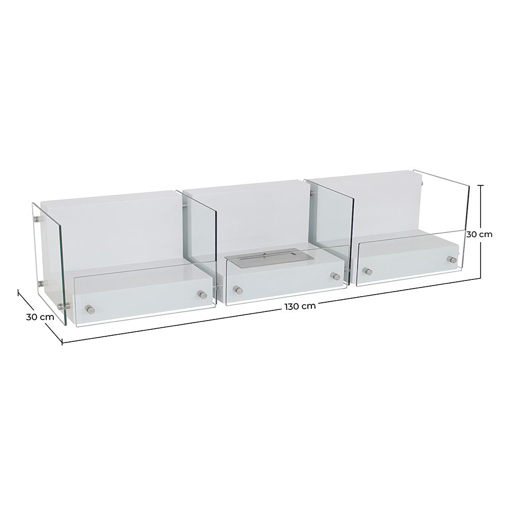 Informations supplémentaires : Cheminée murale. 7 vitres verre Securit, résistance aux hautes températures; 8 fixations, 9 vis.