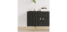 Ce buffet vintage très design est parfait pour ceux qui souhaitent profiter de nombreux rangements. Idéal pour apporter une petite touche moderne à votre salon, votre chambre ou même votre salle à manger, ce buffet vintage est également très stable et solide grâce à ses pieds en métal. Sa magnifique structure, elle, est fabriquée à partir de bois de jamelonier naturel, sculpté et peint en noir.