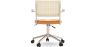 L'innovation rencontre le confort dans cette chaise de bureau pivotante de pointe. Cette chaise de design fusionne le charme du rotin dans le dossier avec la sophistication de l'assise tapissée en cuir végétalien, créant une pièce à la fois fonctionnelle et esthétiquement attrayante. Parfaite pour les bureaux modernes et contemporains, la capacité de pivotement en douceur et les roues de haute qualité permettent une mobilité sans effort, essentielle pour la productivité au travail. L'option de réglage de la hauteur garantit que chaque utilisateur peut personnaliser la chaise selon ses préférences individuelles, offrant une expérience de travail confortable et ergonomique.