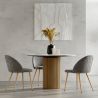 Cette chaise de salle à manger est bien plus qu'un simple siège ; c'est une déclaration de style. Que ce soit à une table de salle à manger traditionnelle ou dans un environnement plus contemporain, cette chaise s'intègre sans effort, apportant une touche de raffinement nordique. Cette chaise est tapissée de velours doux et luxueux, ajoutant une touche de sophistication à votre espace, que ce soit à la maison, dans un hôtel de luxe, un restaurant design ou une salle d'attente. Les pieds en métal, avec leur finition aspect bois naturel, apportent un élément chaleureux et terrestre à la chaise, contrastant harmonieusement avec le velours et créant une esthétique équilibrée.