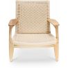 Cette chaise est très confortable grâce à son siège en fibre naturelle, ses pieds et accoudoirs en bois de hêtre sont robustes et solides.