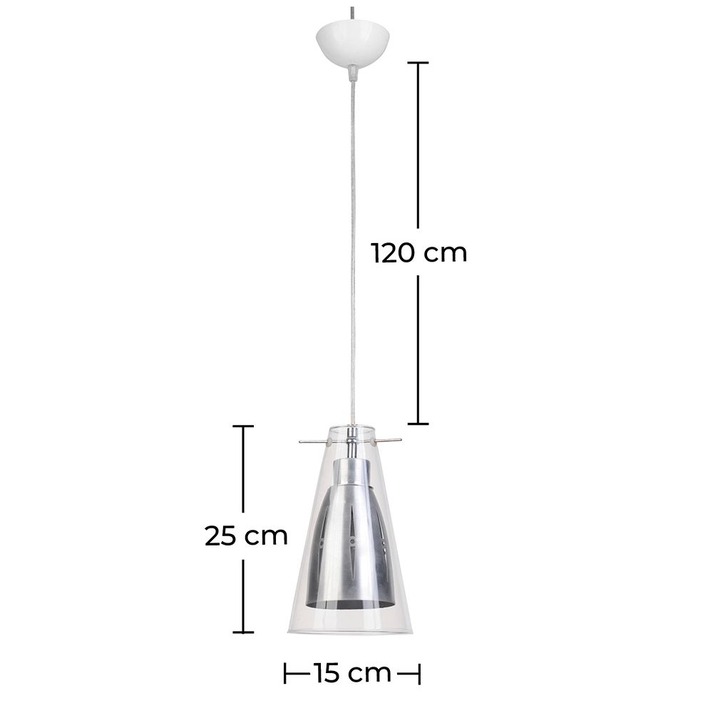 Cette lampe originale est faite d'un côté de verre et de l'autre de métal. Cette combinaison de matériaux et structures font de cette lampe un objet de lumière et de décoration parfait pour sublimer l'aspect de n'importe quel espace. Idéal pour hauts ou petits plafonds, grâce à sa longueur de câble de 180cm, vous pouvez ajuster la hauteur à laquelle vous voulez placer la lampe à suspension.
