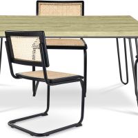 Ce pack contient une table à manger avec des pieds en épingle à cheveux dans un style industriel, idéal pour les restaurants, les hôtels et les cafés. De plus, sa surface est lisse et résistante aux rayures, ce qui la rend idéale pour un usage quotidien. Les chaises en rotin tressés sont très durables et robustes, et le design en cannage est parfait pour les environnements luxueux. Les meubles de style bohème industriel sont parfaits pour ceux qui recherchent un style unique et authentique.