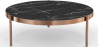 Cette table basse ronde est un véritable bijou en termes de style et de fonctionnalité. Avec une base en marbre noir de dimensions généreuses, d'un diamètre de 90 cm et d'une hauteur de 30 cm, cette table offre une surface large et spacieuse pour répondre à tous vos besoins. Le marbre de la base, réputé pour sa beauté naturelle et sa durabilité, confère une apparence intemporelle et de qualité supérieure. Sa teinte sombre crée un contraste captivant avec la couleur or rose de la structure en acier inoxydable. Notre table Louy de qualité premium est idéale pour les hôtels, les espaces commerciaux ou pour la maison.